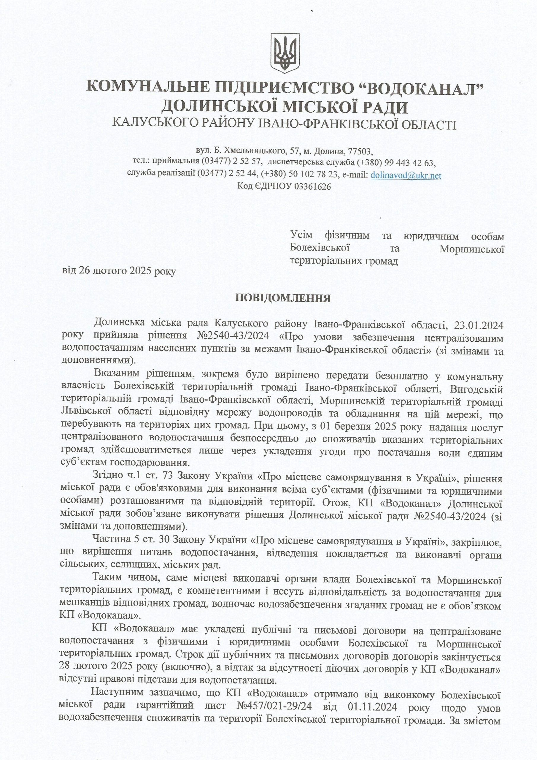 ПОВІДОМЛЕННЯ